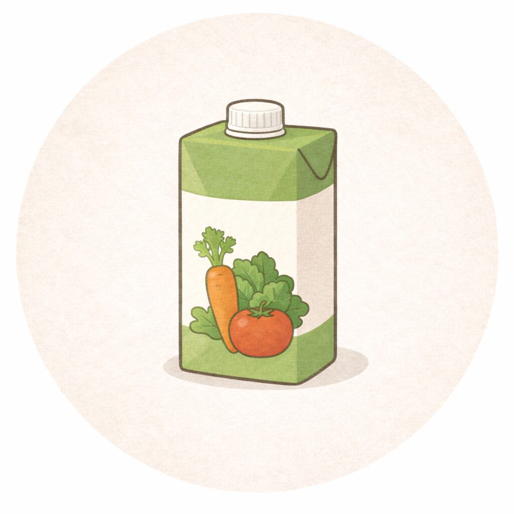 忙しい朝に野菜を補いたいときに便利。食物繊維やカリウム、βカロテンを手軽に摂取できます。「砂糖不使用」と書かれたタイプが選びやすいです。